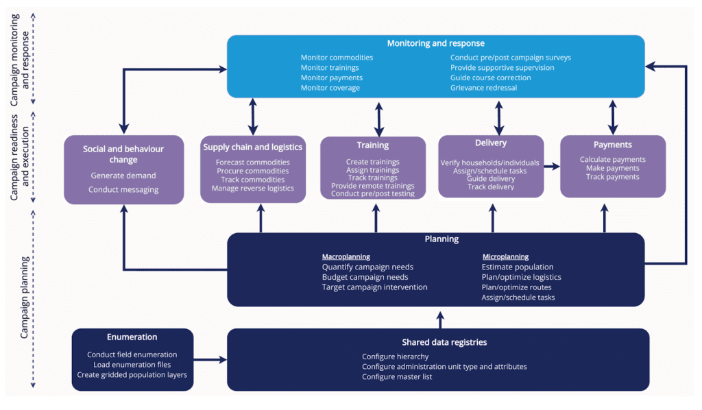 Excerpt from the Integrated Campaign Digitization Toolkit  showing all the identified modules for health campaigns